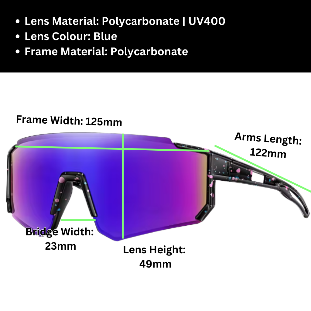 UV400 lenses help block harmful UVA & UVB rays, while the wraparound shape offers added protection from wind and fine debris, maintaining clear side vision during movement.